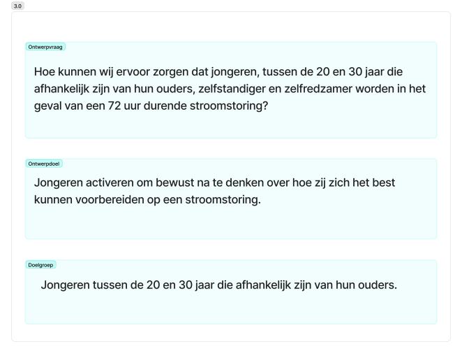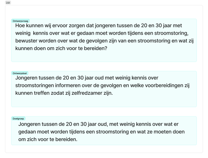 Hierna werd de ontwerpvraag, doelgroep en ontwerpdoel aangepast.