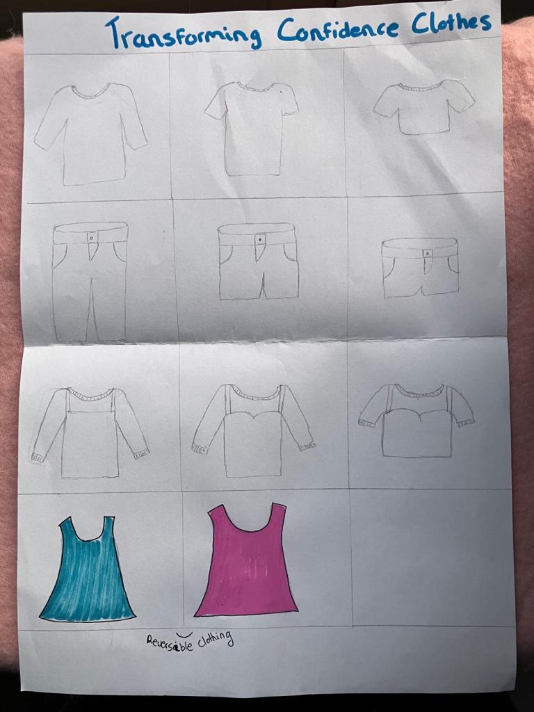 Het grootste obstakel was ik eigenlijk zelf. Dat klinkt een beetje gek dus ik zal het toelichten. Eerder in mijn leven wilde ik een fashion opleiding doen, maar ik werd afgewezen. Sindsdien wilde ik fashion niet meer gebruiken voor school maar bleef het een hobby. Echter, heb ik tijdens dit project de keuze gemaakt om wel fashion wel te gebruiken. Maar dat ging niet zonder slag of stoot. Mijn eerste concepten waren aanzienlijk anders dan het uiteindelijke ontwerp. Concept 1 was een magazine waarin tips werden gegeven over fashion en over hoe je je zelfverzekerder kon voelen. Op het einde was er nog een interactief element. Er was een papieren poppetje wat de gebruiker zelf moest voorstellen. Ook was er papieren kleding wat de gebruiker kon gebruiken om het poppetje aan te kleden. Hiermee kon de gebruiker ontdekken wat ze leuk vind en hoeft ze niet gelijk een hele garderobe te kopen. Het zorgt er echter niet voor dat ze zich zelfverzekerder gaan voelen. Zijn woorden genoeg om een hoger zelfbeeld te krijgen? Waarschijnlijk niet. Het tweede concept was Transforming Confidence Clothes. Dit concept was niet helemaal doordacht. Het was kleding wat mee zou transformeren naarmate jouw zelfvertrouwen stijgt. Dus stel, je wilt een crop top dragen. Je begint met een t-shirt met lange mouwen en het wordt steeds korter totdat je een crop top krijgt. Echter, kan je kledingstuk niet meer langer maken. Ook betekent zelfverzekerdheid niet alleen maar kortere kleding dragen.
