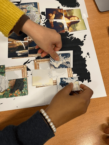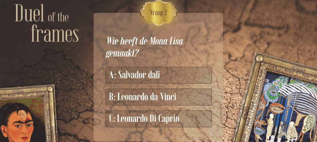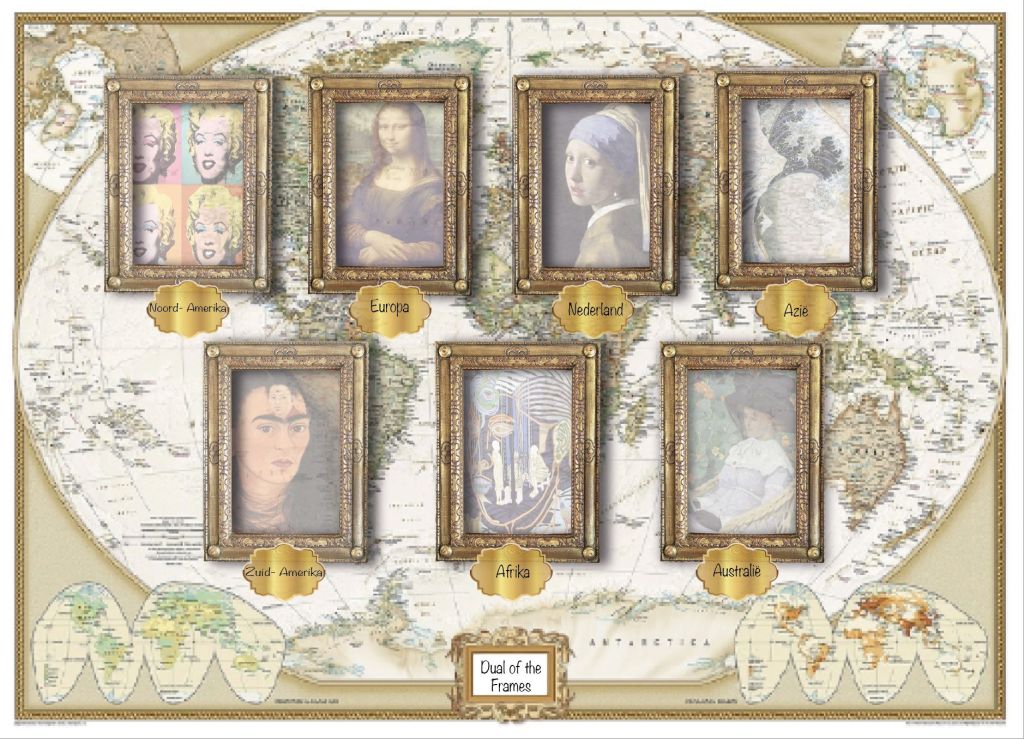 Het eindresultaat: Duel of the Frames. Na vele brainstormsessies, woordwebs en mindmaps hadden wij het besluit genomen om een bordspel te maken met digitale quizvragen. Het spel wordt in twee teams gespeeld waarbij het ene team de echte kunstwerken heeft en het andere team de neppe kunstwerken. Om de beurt mag een team een vraag beantwoorden. Bij een goed beantwoorde vraag mag het team dobbelen. De dobbelsteen geeft dan aan hoeveel kaarten er op het bord mogen worden geplaatst. Het team met de meeste complete kunstwerken wint het spel. Het spel bleek een succes bij de doelgroep te zijn. Er zat spanning in het spel waardoor de leerlingen fanatiek werden en graag wilden winnen. In de tussentijd leerden de leerlingen veel over de kunstwerken, de schilders en het land waar het vandaan kwam. Tijdens sprint 2 hadden wij dit spel getest met de doelgroep en in sprint 3 hebben we dit spel verfijnd tot wat het nu is.