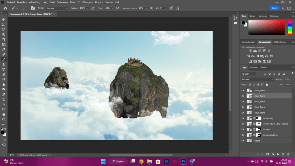 De tweede opdracht die ik moest maken ging meer naar de fantasierijke kant. Ik moest wolken met bergen photoshoppen. Deze opdracht ging al een stuk beter omdat ik de tools al een beetje beter kende.