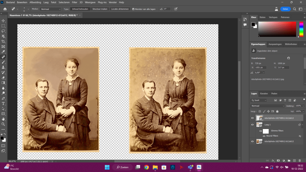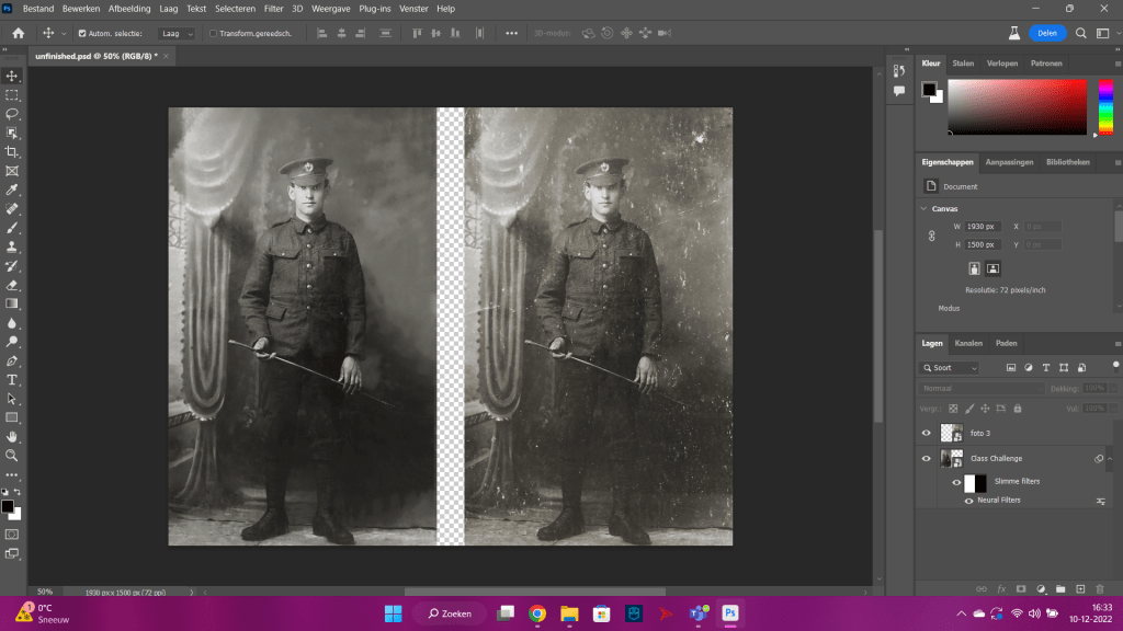 In week drie heb ik oude foto’s gerestaureerd met behulp van Photoshop Beta. Het lastige hieraan is dat elke kleine stip en imperfectie handmatig verwijderd moet worden en dat is een lang proces.