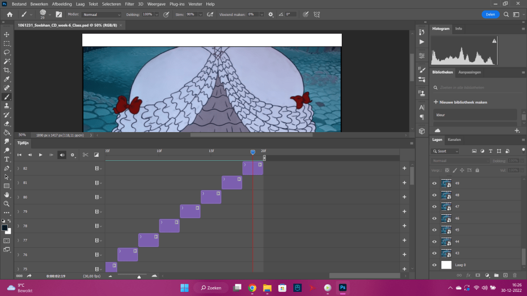 Week 6 stond in het teken van gifjes. Dit zijn korte filmpjes van een paar seconden die oneindig afspelen. Ik wist op dat moment niet dat een GIF ook met Photoshop kon worden gemaakt. Voor de eerste GIF heb ik gebruik gemaakt van een oude video van Betty Boop als assepoester.