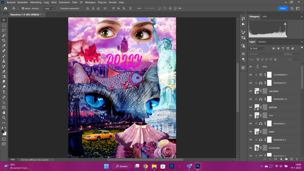 Voor de allerlaatste opdracht moest ik een soort moodboard/poster/fantasierijke beeld maken. Bij deze opdracht moest ik gebruik maken van alle skills die ik tot nu had geleerd. Ik ben op de dag van vandaag nog steeds heel trots op deze moodboard. Het laat niet alleen zien wie ik ben maar ook hoe mijn creatieve brein te werk gaat.